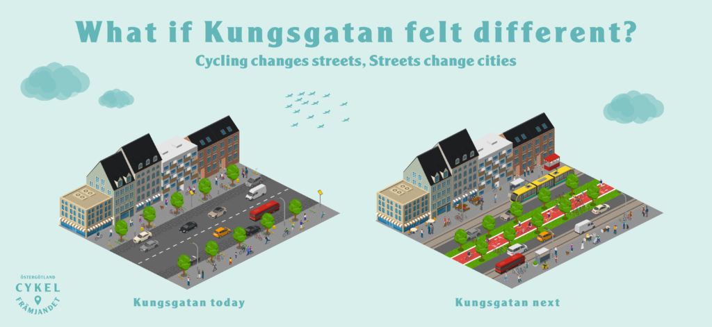 Här ses en tänkt förändring av Kungsgatan för en effektivare, tystare, renare, miljövänligare stadsbild. Eller vad tycker du?